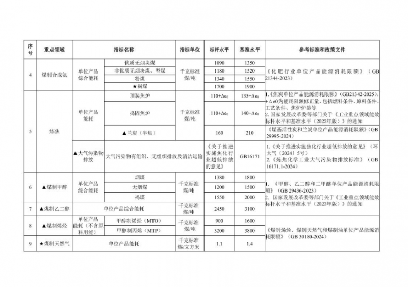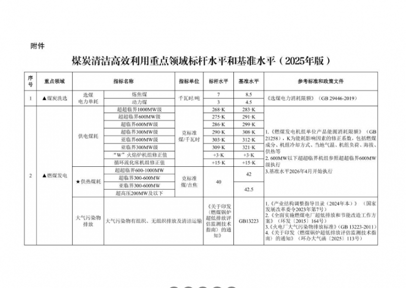 为贯彻落实党中央、国务院决策部署,推动煤炭产业由低端向高端、煤炭产品由初级燃料向高价值产品攀升,按照《国家发展改革委等部门关于加强煤炭清洁高效利用的意见》(发改运行〔2024〕1345号),经商有关方面,现发布《煤炭清洁高效利用重点领域标杆水平和基准水平(2025年版)》,并就有关事项通知如下。