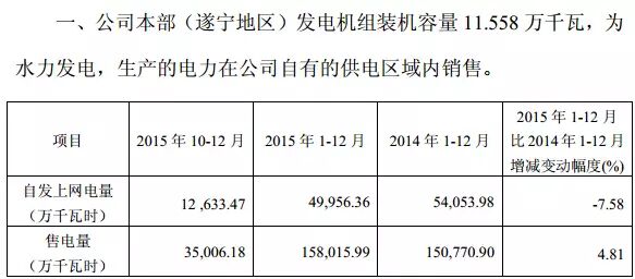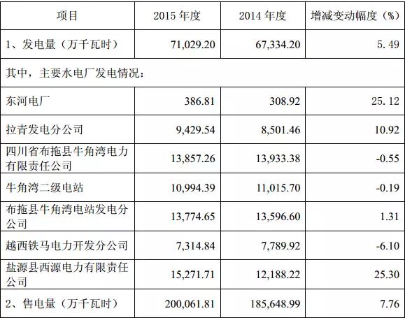 本公司持有 46%股权的控股子公司甘孜州康定华龙水利电力投资开发有限公司所属的炉城电站(甘孜州康定地区)发电机组装机容量 3.00 万千瓦(本公司权益装机容量为 1.38 万千瓦),为水力发电,生产的电力销售给国网四川省电力公司。
