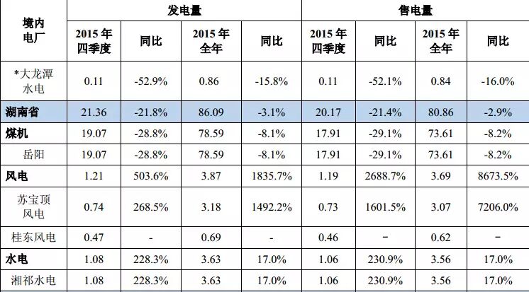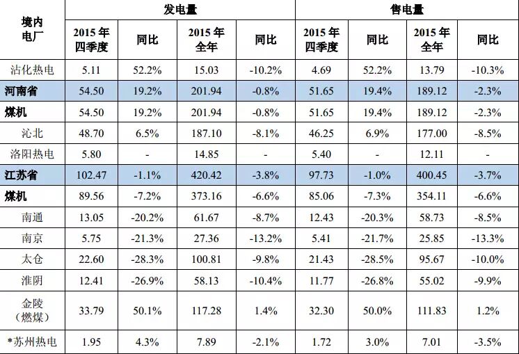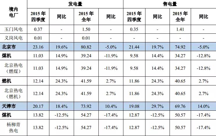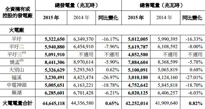 截至二零一五年十二月三十一日止年度,本集团主要发电机组的总发电量及总售电量分别如下: