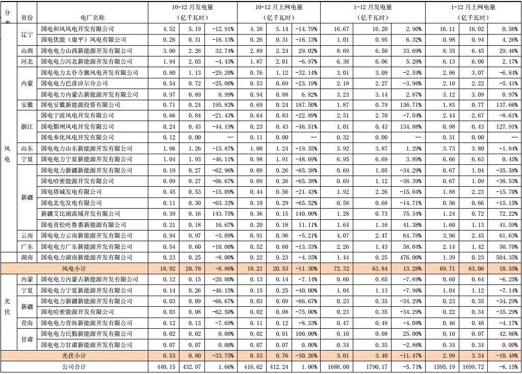 (二)风电业务因新建风电场项目陆续投产,计算装机容量同比增加,发电量同比增加,盈利同比增长;