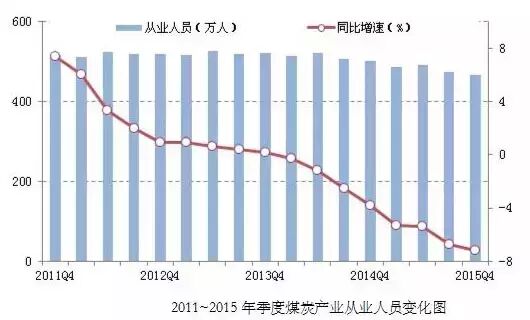 煤炭产业从业人员连续两年出现负增长,2015年末从业人数降至465万人,较上年末减少36万人,降幅为7%。可见在产业不景气背景下,通过裁员等方式实施自救的煤炭企业越来越多。