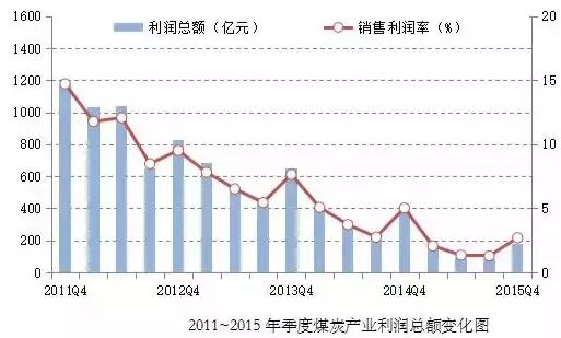受煤炭价格下跌并持续低迷影响,煤炭产业销售利润率在前三季度持续下降,第三季度低至1.28%,全年平均销售利润率为仅为1.86%,较上一年下降2.25个百分点。四季度利润率虽有所回升,达到2.7%,但仍比上年同期低了2.3个百分点,比全部工业平均水平(6.1%)低3.4个百分点,不及其一半。