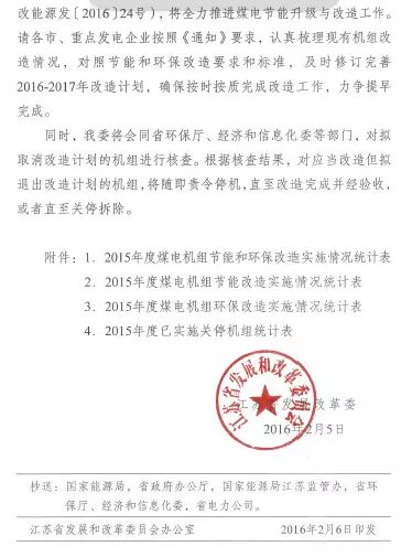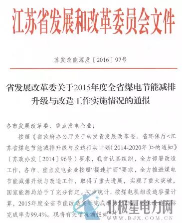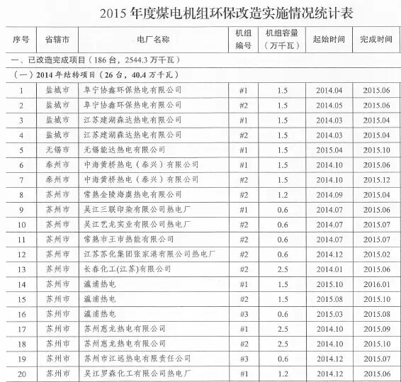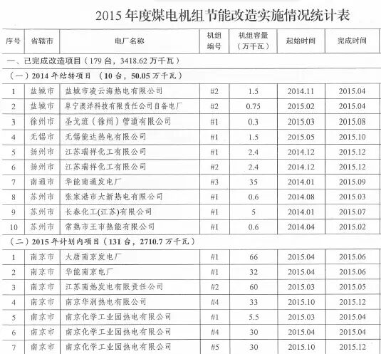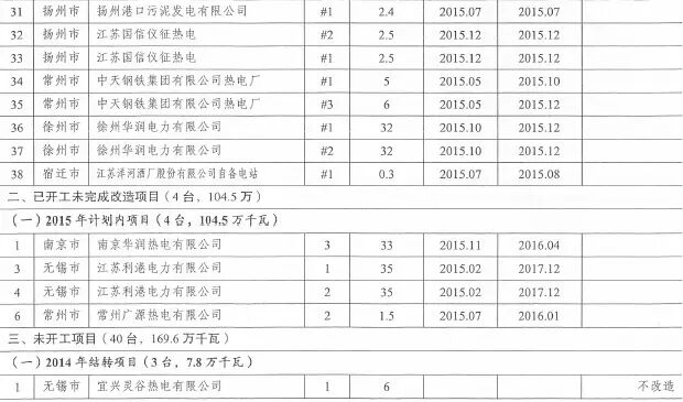 【重磅】江苏2015年度煤电节能减排升级与改造工作实施情况