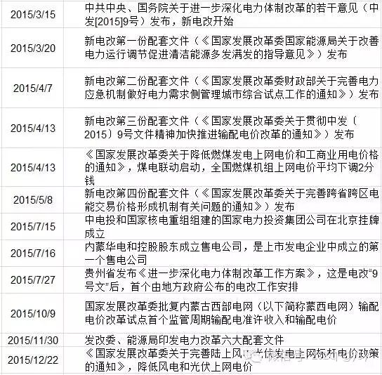 电力行业2015年以来历史事件回顾