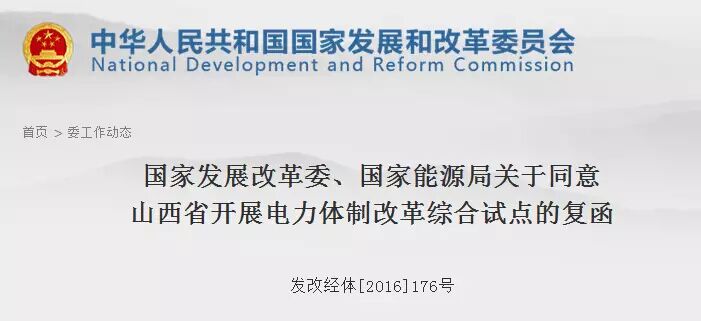一、同意山西省开展电力体制改革综合试点。经征求有关部门意见汇总修改形成的《山西省电力体制改革综合试点实施方案》附后,请据此制定输配电价改革、电力市场建设、交易机构组建、售电侧改革等专项试点方案,报国家发展改革委、国家能源局。